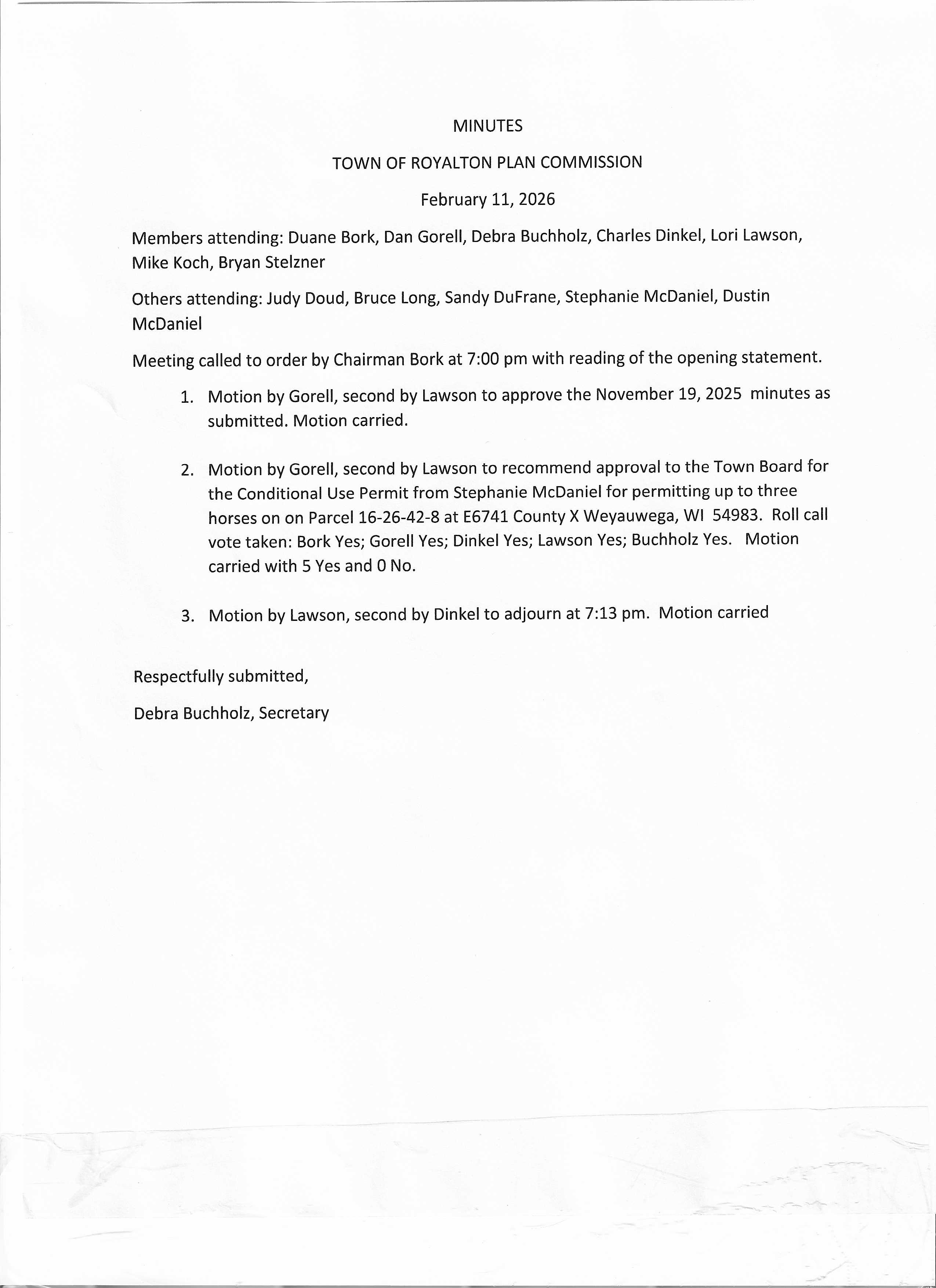 Town of Royalton Plan Commission Mtg Feb 11,2026